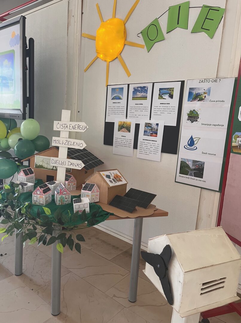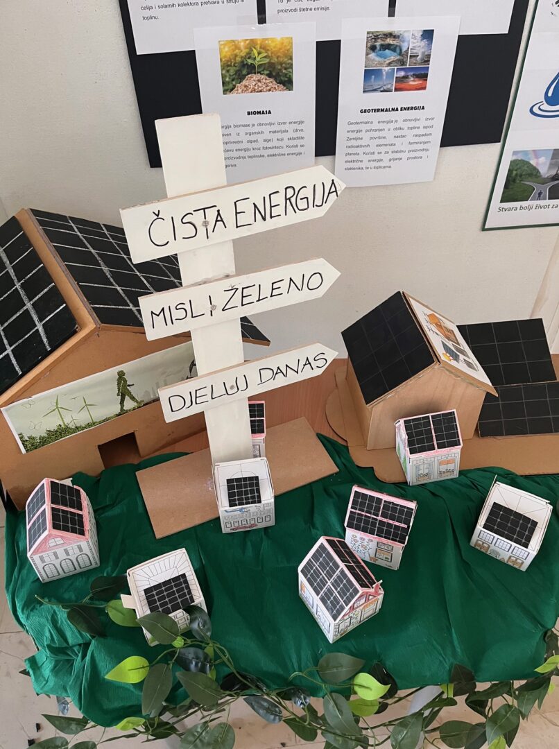 Naši učenici 2.S razreda, koji se školuju za zanimanje instalater grijanja i klimatizacije, osmislili su i pripremili odličan edukativni kutak povodom obilježavanja Dana obnovljivih izvora energije. Na izbornom predmetu Energetska učinkovitost i certificiranje zgrada izradili su model kuća opremljenim solarnim panelima, demonstracijski model vjetroelektrane te edukativne plakate koji prikazuju prednosti i važnost obnovljivih izvora energije. Napravili su i digitalnu prezentaciju te smo tako dobili cjelovit uvid u suvremena energetska rješenja.