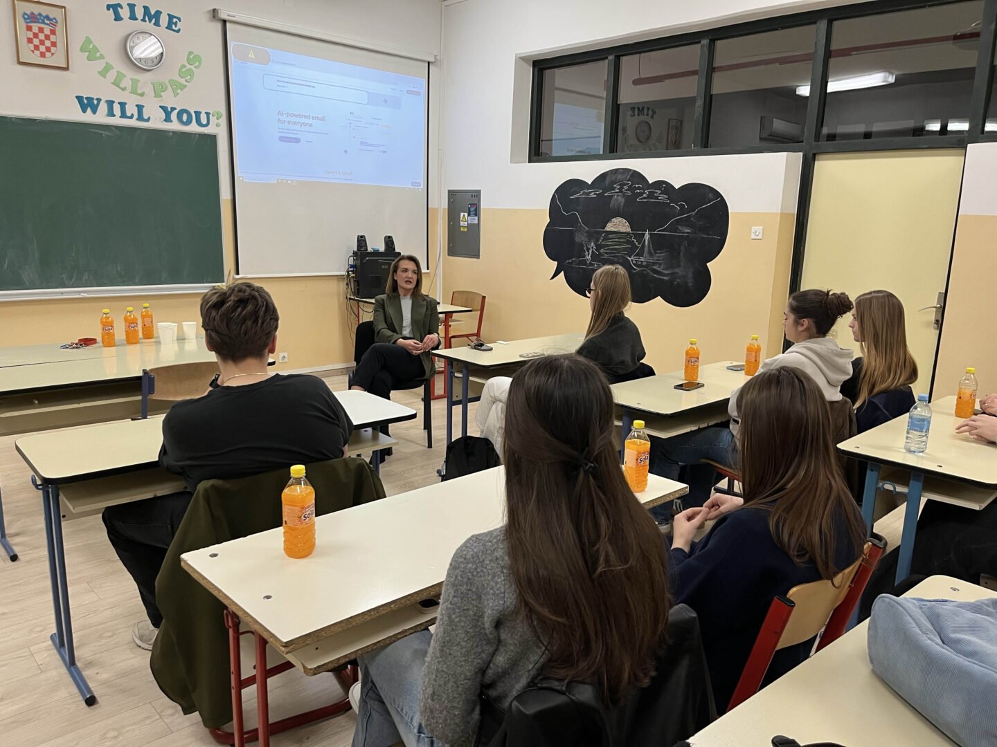 Tijekom predavanja gospođa Mlinarić podijelila je s učenicima svoja bogata iskustva iz područja terenskog novinarstva, približivši im izazove i ljepotu novinarskog poziva. Učenici su pokazali veliki interes te su postavljali brojna pitanja na koja je Ana rado i iskreno odgovarala, dodatno ih potaknuvši na razmišljanje o ulozi medija u suvremenom društvu.