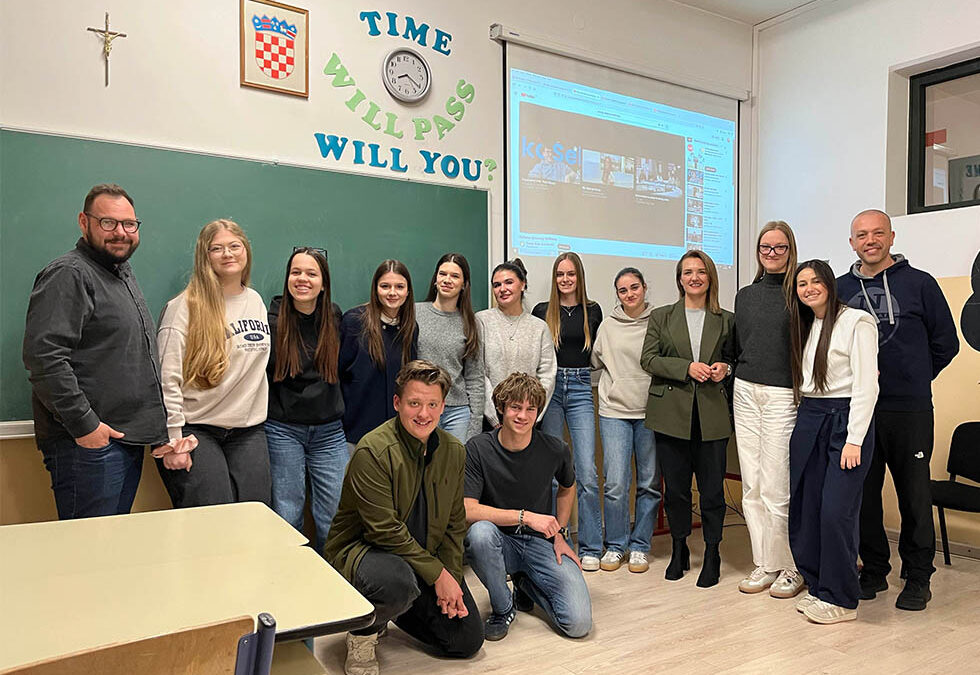 Zahvaljujemo Ani Mlinarić i Ivanu Borojeviću na izdvojenom vremenu, poticajnom predavanju i inspirativnim primjerima iz profesionalne prakse koji su učenicima pružili vrijedan uvid u dinamiku novinarskog i snimateljskog posla.
