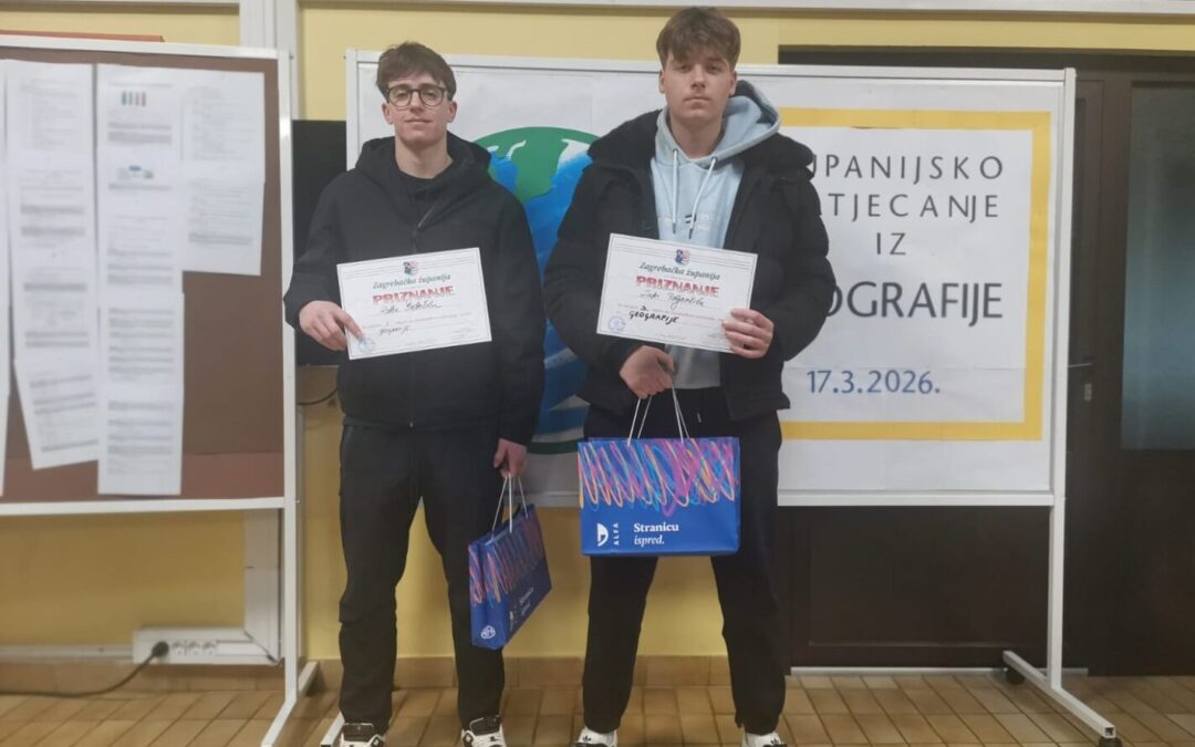 Roko Šebečić iz 4.G1 osvojio je drugo mjesto, a Luka Poljančić iz 2.G2 treće mjesto na županijskoj razini Natjecanja iz geografije. Mentor je nastavnik Marko Bacan.