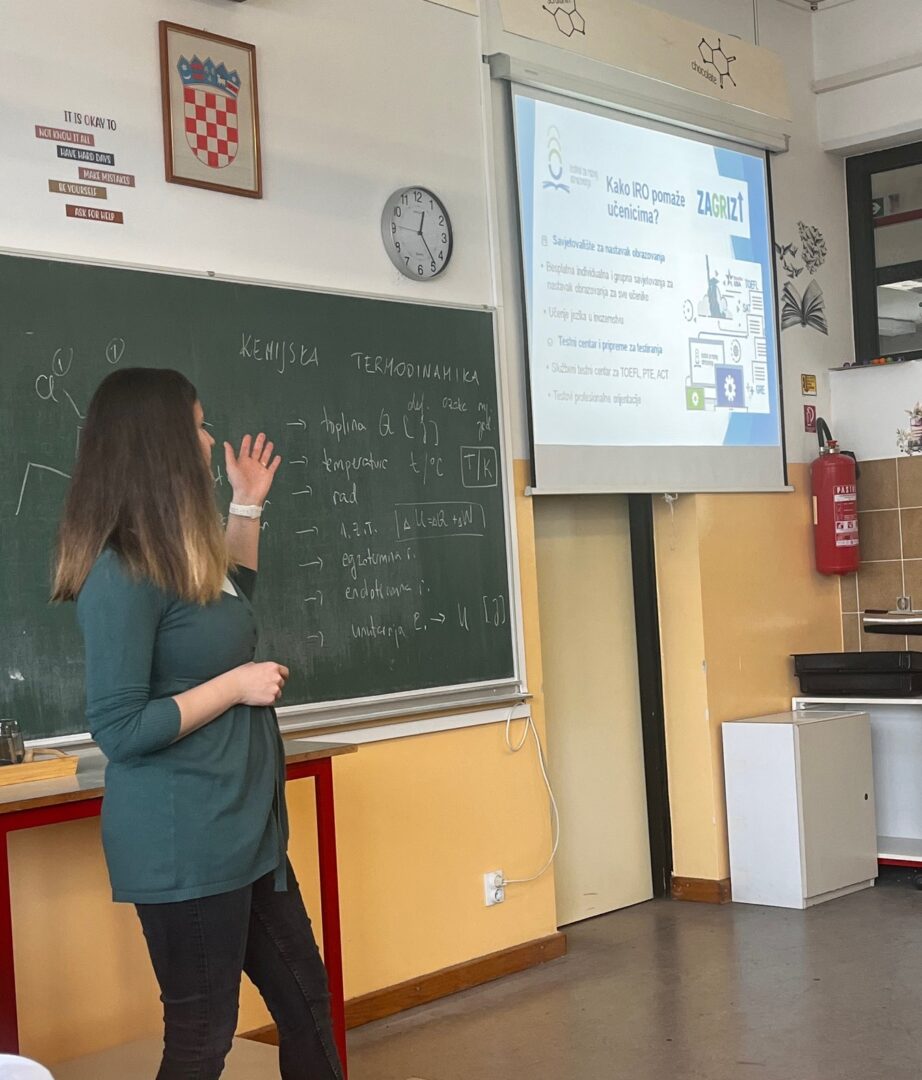 U sklopu partnerstva ZAGRIZI između naše škole i Instituta za razvoj obrazovanja za pravičan i uspješan pristup visokom obrazovanju za naše je učenike četvrtih razreda održano predavanje o nastavku obrazovanja. Predstavnica IRO-a Barbara Bubalo na ovom je grupnom savjetovanju predstavila mogućnosti koje nude visokoškolske ustanove u Hrvatskoj, ali i u EU, UK, SAD-u pa čak i u Australiji.